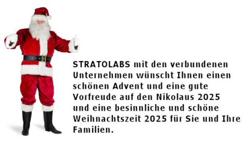 | PRESSEMITTEILUNG: STRATOLABS mit den damit verbundenen Unternehmen wünscht Ihnen eine schöne Adventszeit 2025 und einen schönen Nikolaus 2025 und ein Frohes und Besinnliches Weihnachtsfest 2025. | |